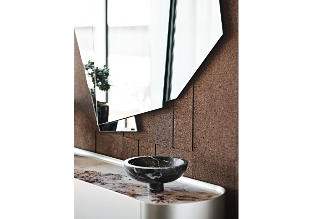 Risiko diseñado por Studio Kronos para Cattelan Italia es un espejo de pared realizado en vidrio espejado. Disponible en dos dimensiones. Luz LED opcional.