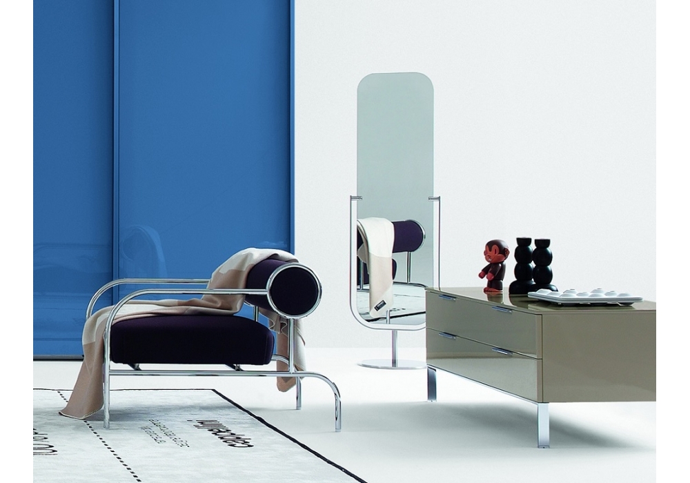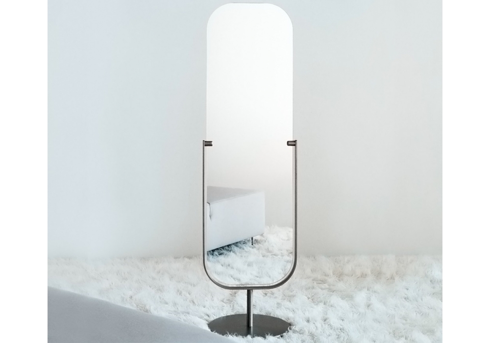 Mirror diseñado por Jasper Morrison para Cappellini es un espejo de suelo de dos caras con inclinación regulable.