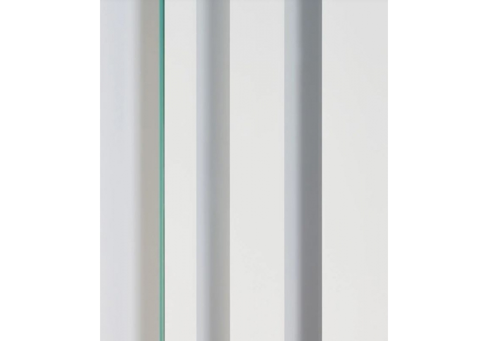 Andromeda diseñado por Nanda Vigo para Glas Italia es un espejo rectangular, negativo-positivo (las partes transparentes se alternan con las partes espejadas), disponible en varias formas y tamaños. El espejo está fabricado en diferentes acabados y está equipado con un sistema de suspensión que permite orientar las piezas en varias direcciones.