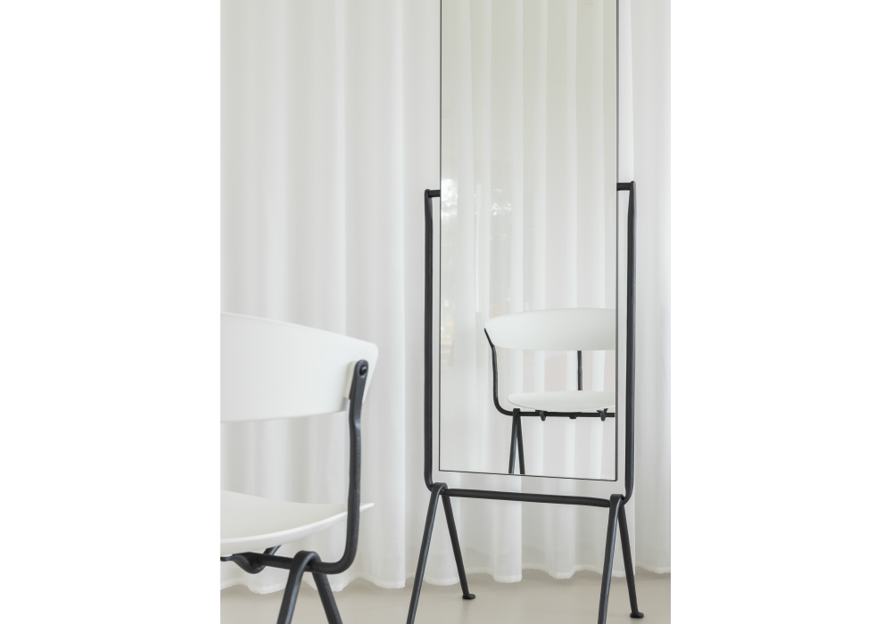 Officina diseñado por Ronan & Erwan Bouroullec para Magis es un espejo de pie con estructura en hierro forjado pintado, espejo de doble cara con vidrio retrofilmado.
