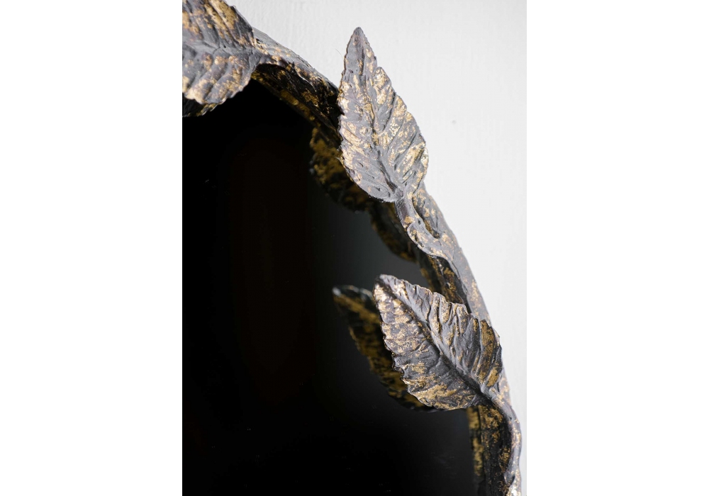 Aurelia Small producido y firmado por Porta Romana es un espejo circular completamente estructurado en acero forjado tallado y decorado a mano. La estructura de metal está decorada con múltiples aplicaciones florales y pintada en diferentes colores. El vidrio reflectante está disponible en vidrio estándar o vidrio envejecido.