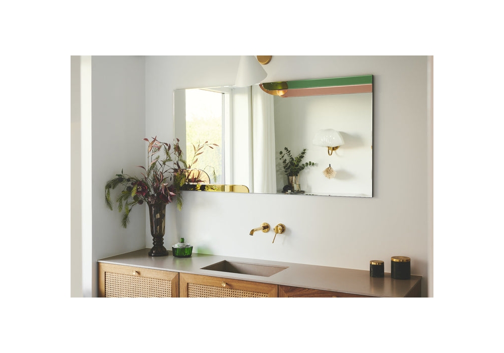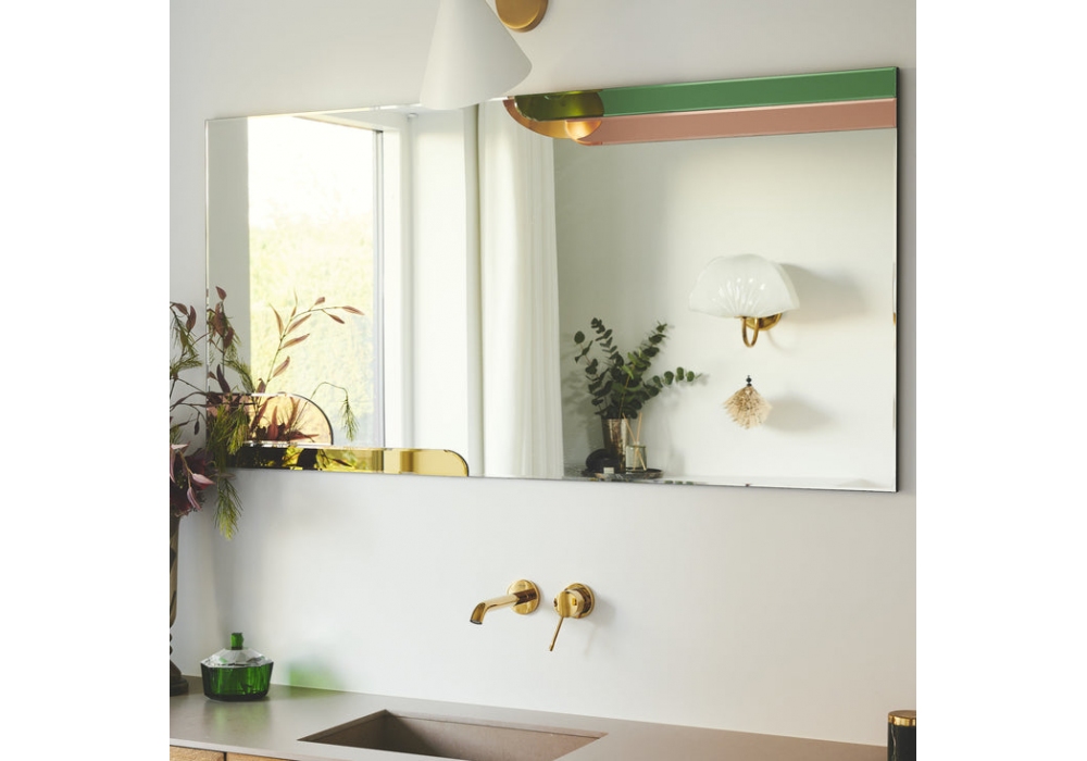 Scandinavian Spring producido y diseñado por Reflections Copenhagen es un espejo de vidrio cuadrangular aplicado sobre una base de soporte de MDF. El espejo está enriquecido con aplicaciones en plata, rosa, verde y bronce.