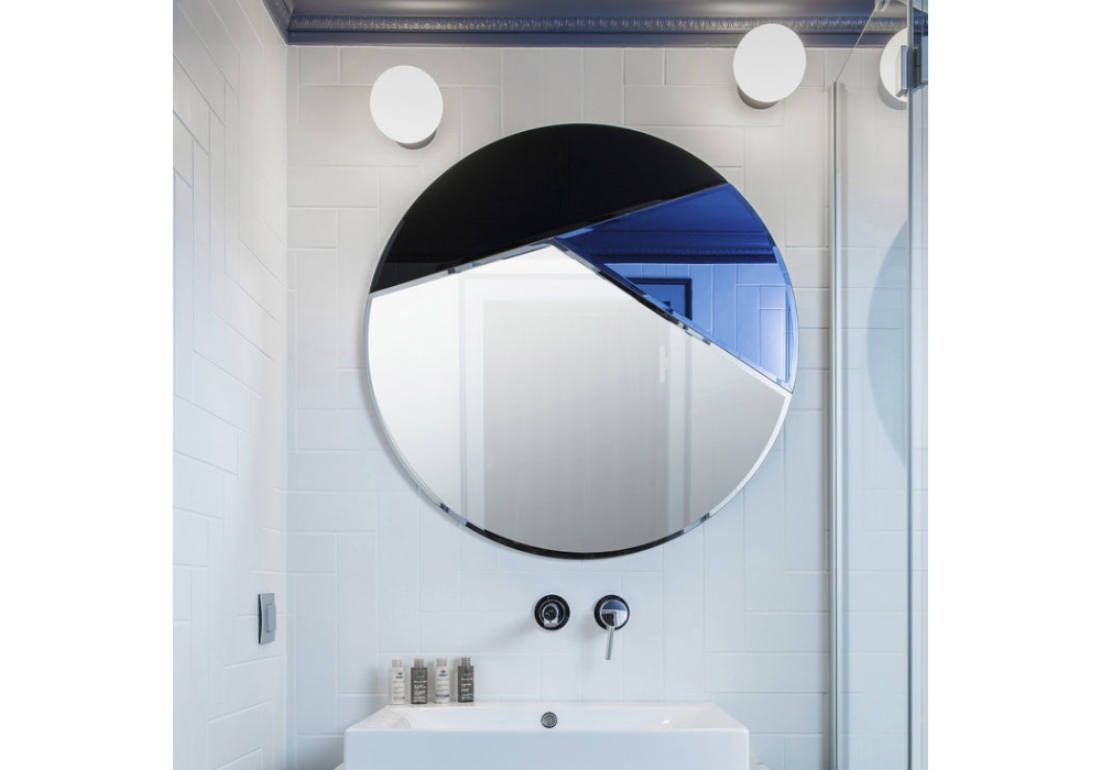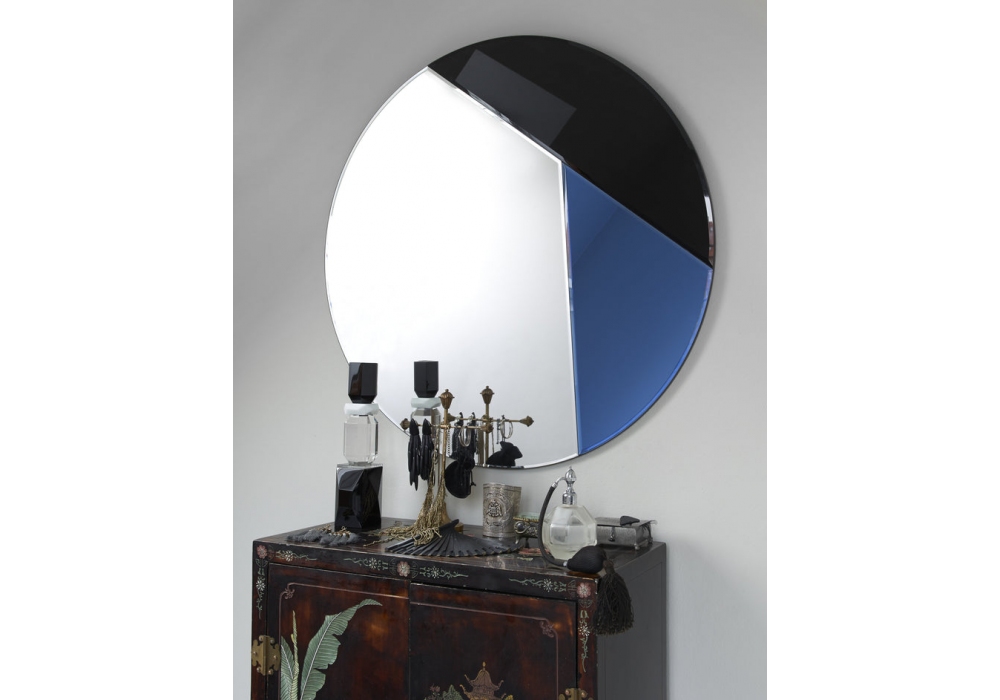 Nouveau 80 producido y diseñado por Reflections Copenhagen es un espejo de vidrio circular aplicado sobre una base de soporte de MDF. El espejo presenta formas geométricas coloridas en diferentes acabados que hacen referencia a la era del estilo geo de los años 80.