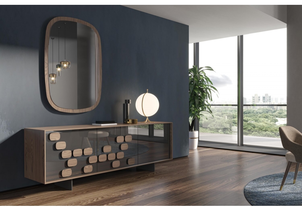 Cage diseñado por Gualter Torres para Gual Design es un espejo con estructura en madera de nogal chapada o eucalipto ahumado.