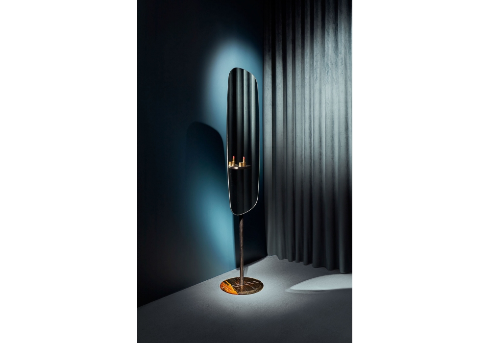 Espejo Pie diseñado por Andrés Martinez para Nomon es un espejo de pie con estructura en nogal o fresno negro, con base en mármol Emperador o Sahara Noir.