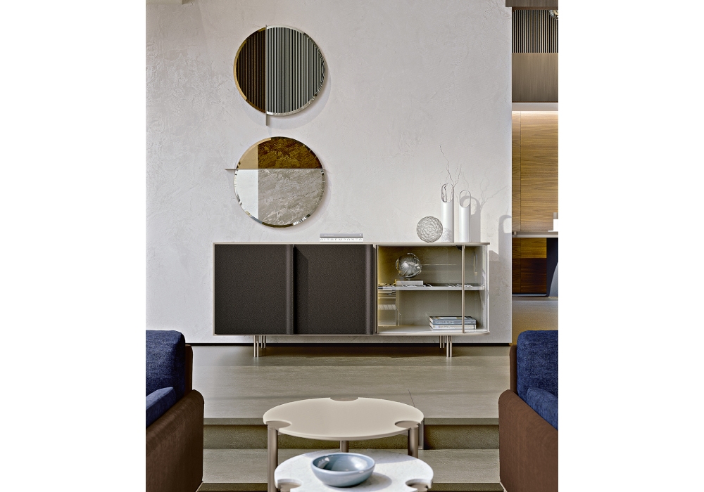 Zero diseñado por Andrea Bonini para Turri es un espejo con estructura de MDF en acabado lacado brillo con detalles en metal.