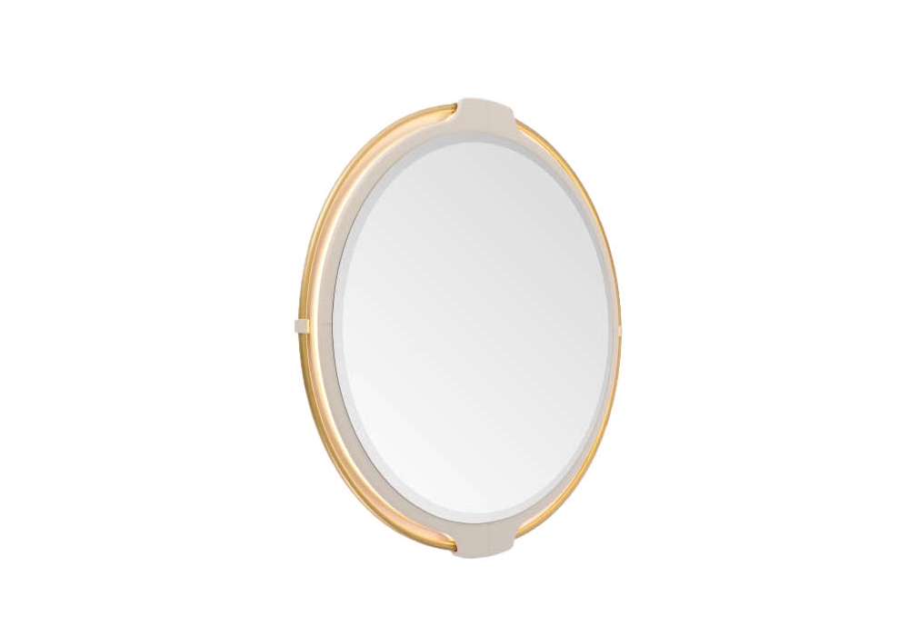 Vine diseñado por Frank Jiang para Turri es un espejo con estructura en MDF con revestimiento en piel y partes metálicas en oro cepillado o bronce. Iluminación LED incluida.