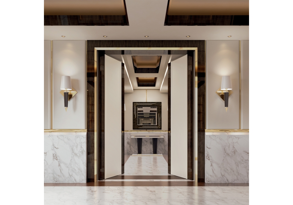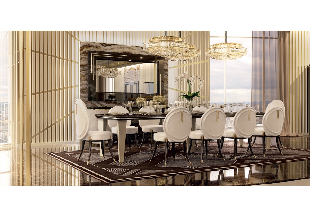 Noir diseñado por Andrea Bonini para Turri es un espejo con estructura en MDF y paneles de aglomerado en acabado lacado brillante con aplicación de cordones de cuero y partes metálicas en acabado dorado o bronceado.