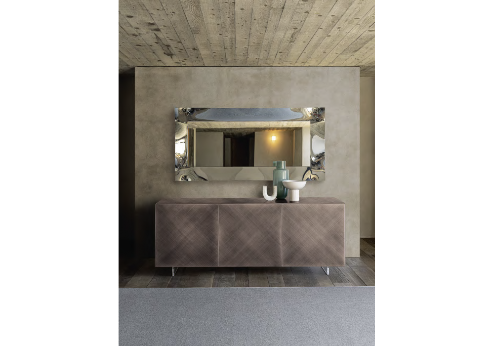 Mirage diseñado por Riflessi es un espejo con marco curvo realizado íntegramente en cristal espejado ahumado. Disponible en diferentes dimensiones.
