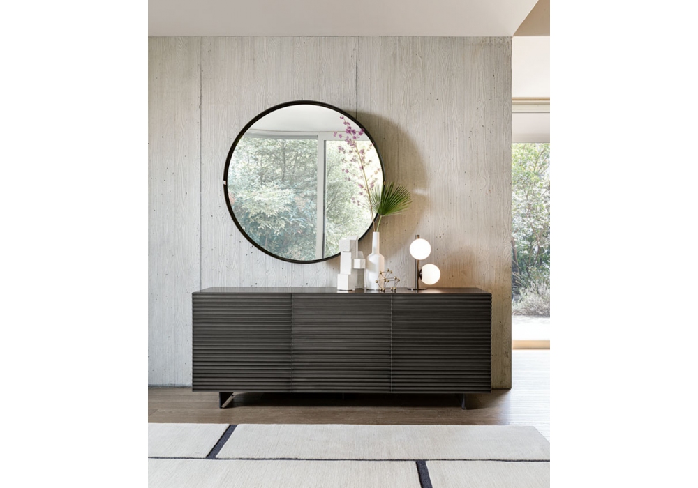 Omega diseñado por Riflessi es un espejo con marco de metal pintado o cepillado a mano. El acabado espejo se puede realizar en cristal bronceado o espejado. Disponible en diferentes dimensiones.