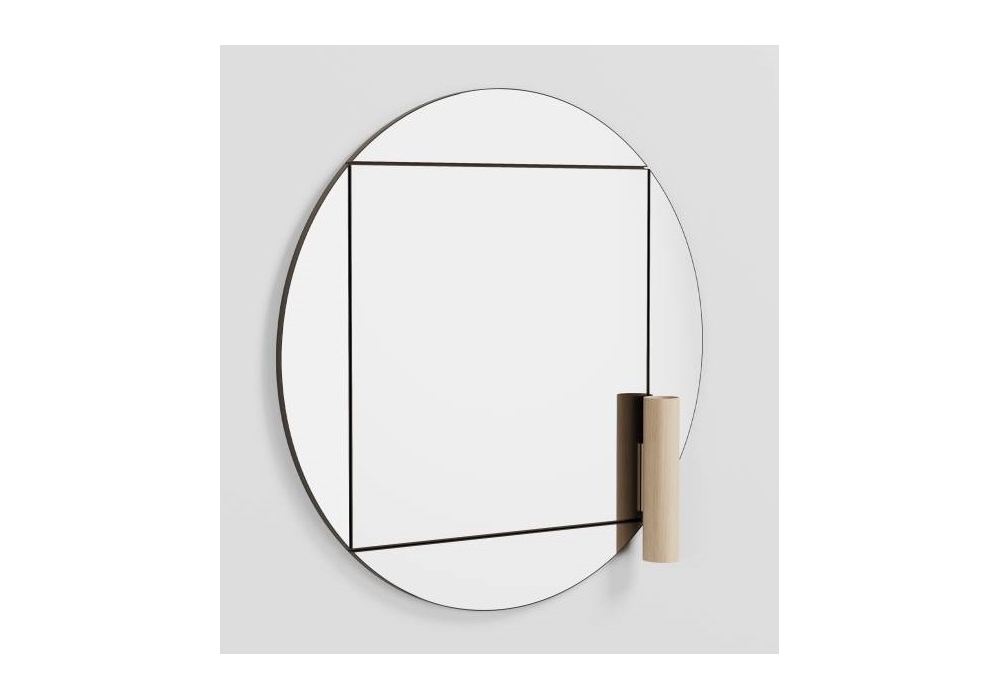 Paradigma diseñado por Marco Lavit para Living Divani es un espejo compuesto por una parte central cuadrada y cuatro elementos externos en forma de "media luna" fijados a una chapa. Cada elemento está compuesto por un panel de MDF con inserto de metal y marco en acabado espejo o madera contrachapada. La tapa trasera es de MDF lacado en negro mate con sistema integrado de enganche y ajuste a la pared.