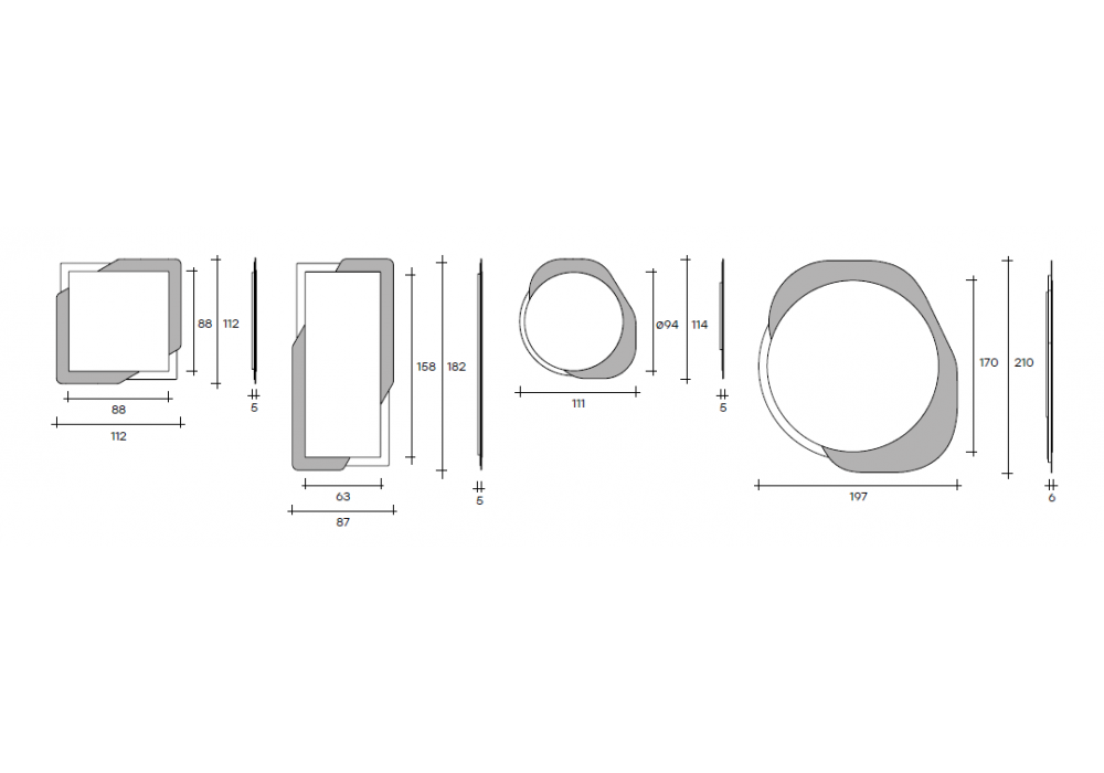 | Dimensiones | 111 x 5 x H 114 cm; 112 x 5 x H 112 cm; 87 x 5 x H 182 cm; 197 x 6 x H 210 cm. |