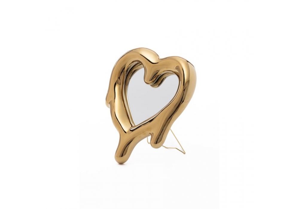 Melted Heart diseñado por Marcantonio para Seletti es un espejo pintado con marco de porcelana, tapa de cristal y soporte de metal. Melted Heart está disponible en diferentes acabados.