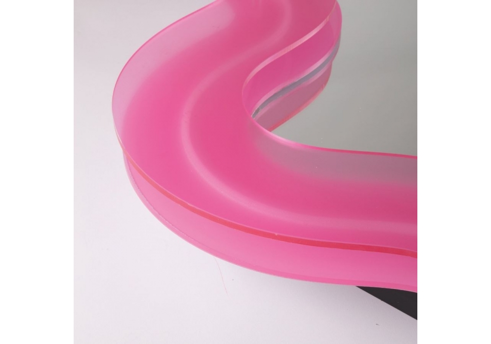 Supercurve diseñado por BBMDS para Seletti es un espejo con marco Perfspex rosa y espejo de cristal. El marco está retroiluminado con fuentes de luz LED. Supercurve está disponible en diferentes modelos.
