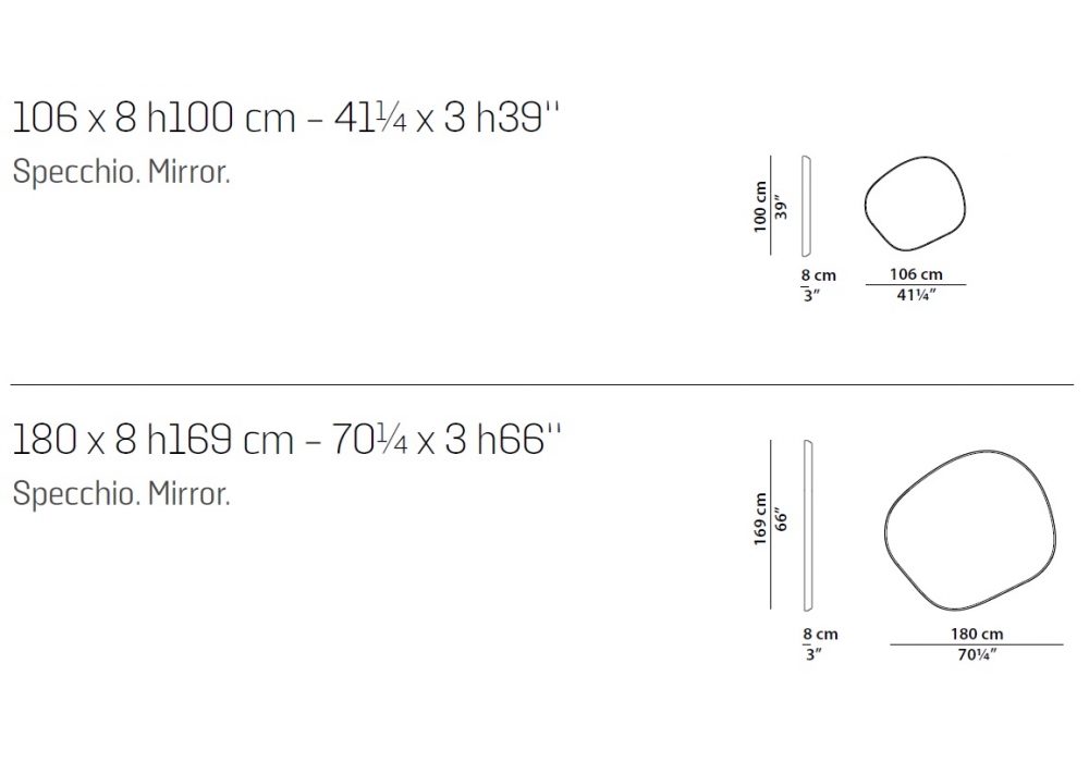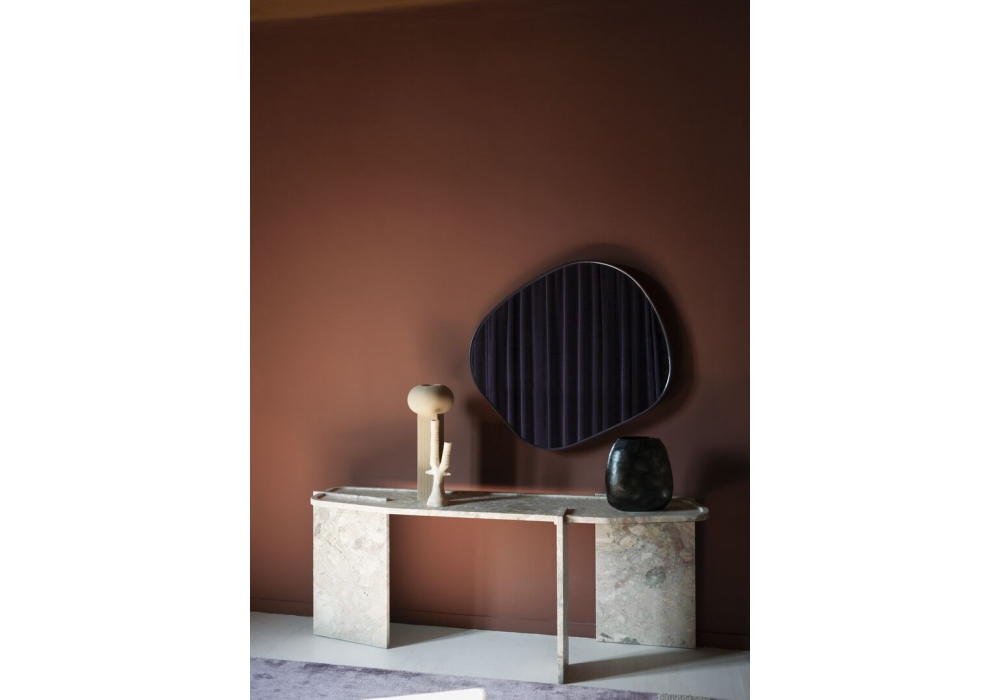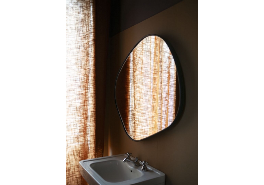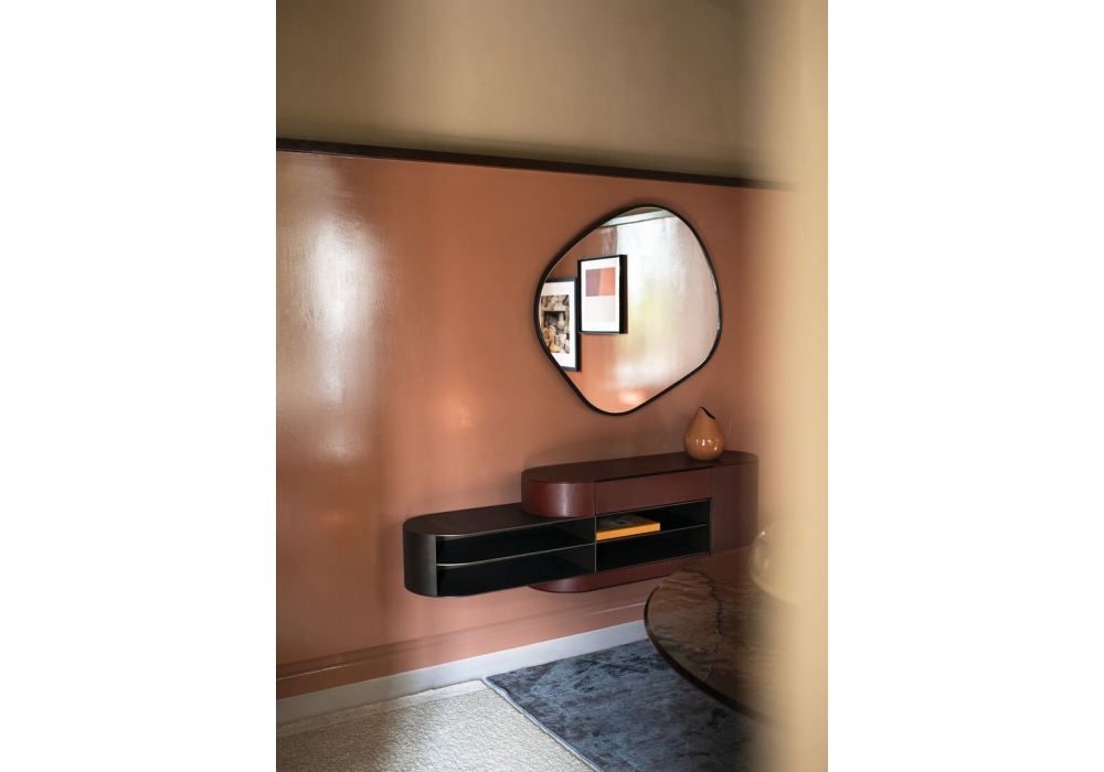 Fluid diseñado por Federico Peri para Baxter es un espejo con estructura alveolar de aluminio con marco de MDF revestido en piel. También disponible en diferentes medidas.