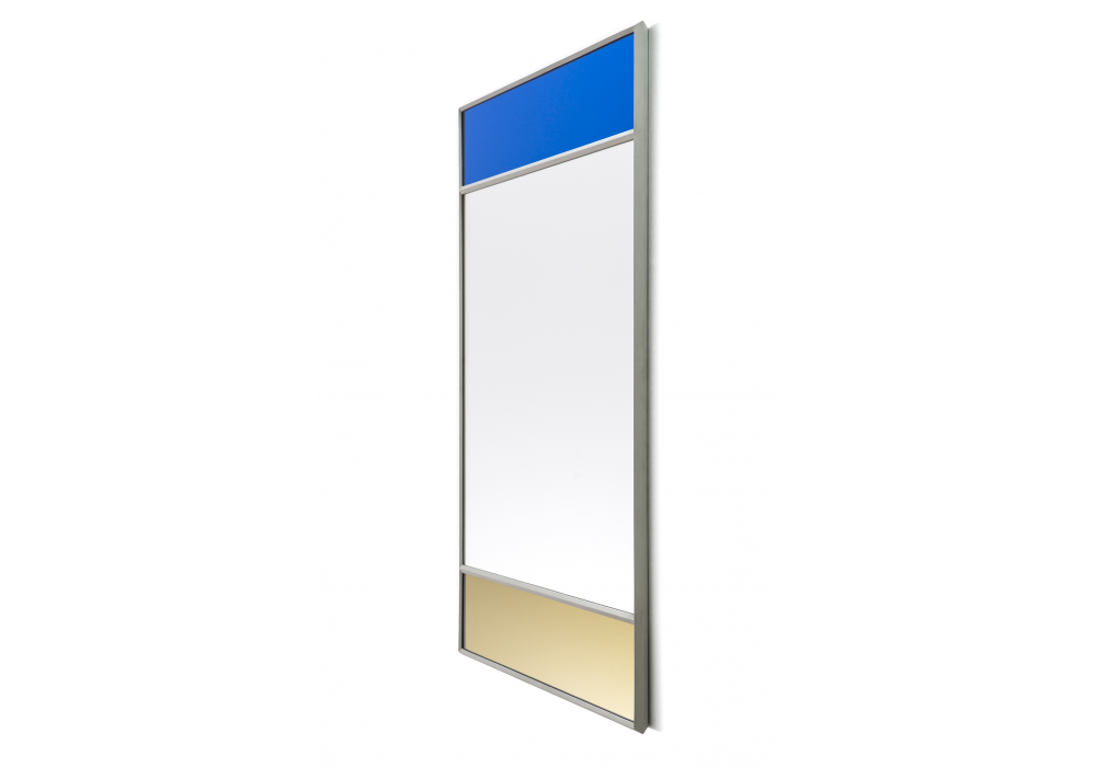Vitrail diseñado por Inga Sempé para Magis es un espejo rectangular con marco de goma. Espejo con vidrio revestido y bandas de colores.