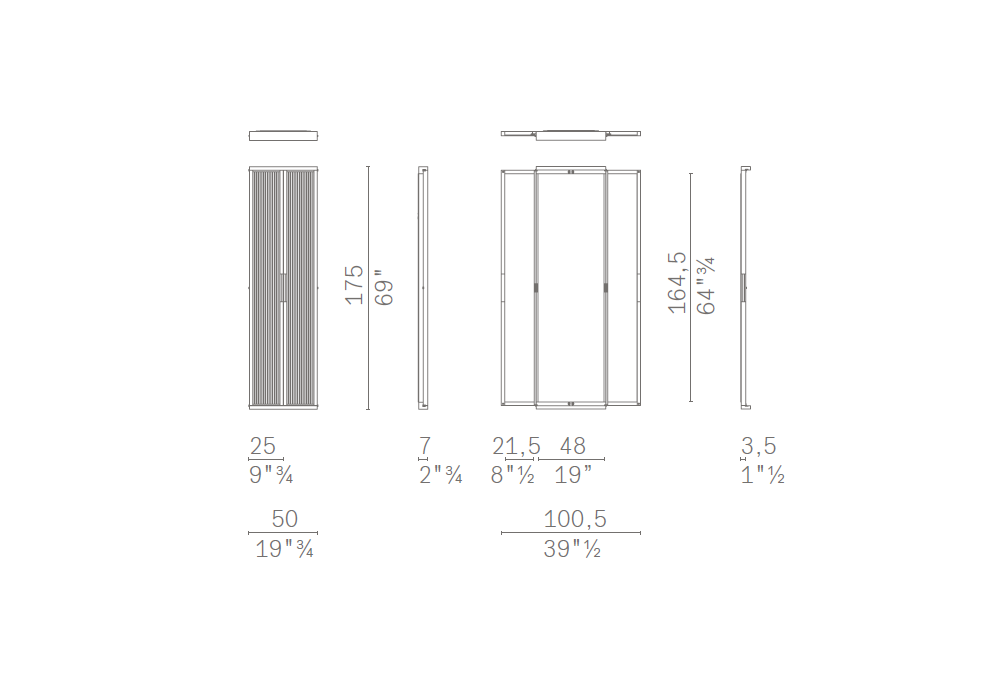Duo diseñado por Roberto Lazzeroni para Poltrona Frau & Ceccotti Collezioni es un espejo de pared compuesto por espejos insertados en un marco de fresno macizo que, una vez abierto, permite verse cómodamente desde diferentes ángulos. Cuando no es necesario mantenerlo abierto, las dos puertas laterales se pueden unir: gracias al revestimiento exterior de fresno acanalado, el efecto es el de una puerta cerrada. El espejo de pared DUO de tres puertas se fija a la pared gracias a un mecanismo de anclaje de bayoneta.