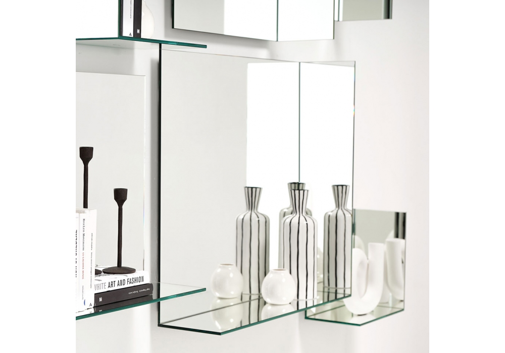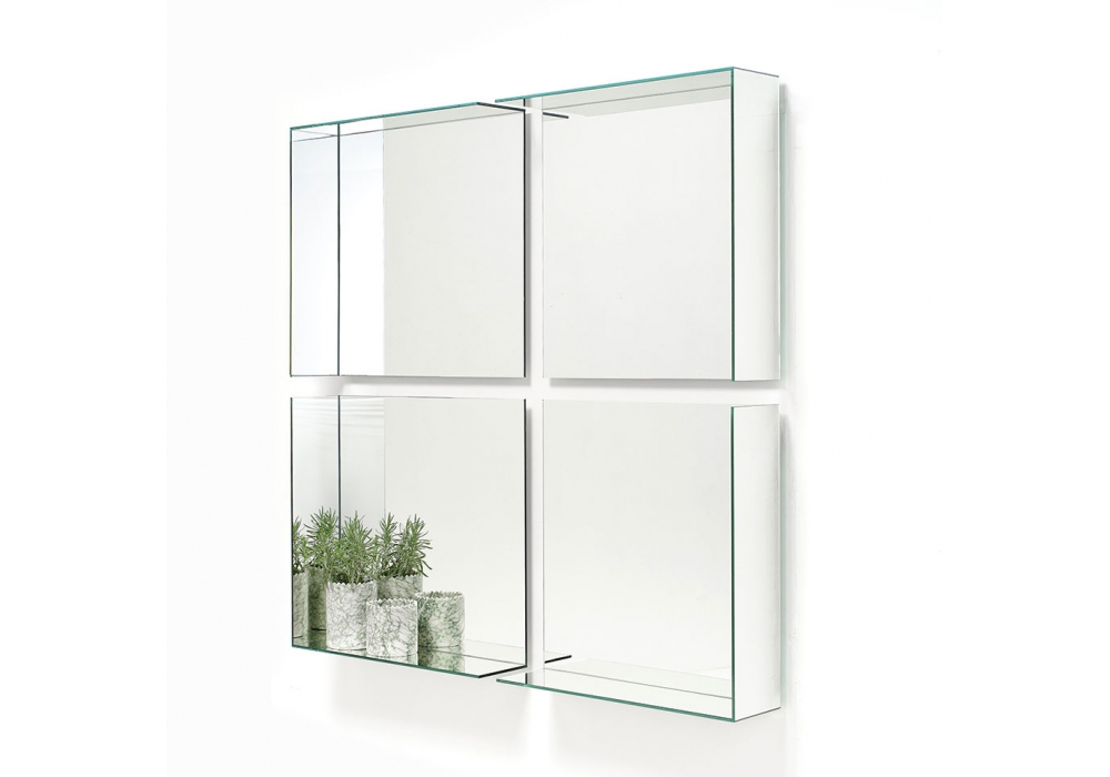 Narciso diseñado por Claudio Bitetti para Mogg es un espejo cuadrado compuesto por superficies reflectantes sencillas y volúmenes espaciales reales. Completamente espejado, captura el espacio circundante, lo multiplica infinitamente y crea juegos de perspectiva inesperados donde la realidad se funde con la ilusión. Diseñado para albergar objetos, transforma el espejo en un elemento de decoración práctico y versátil.