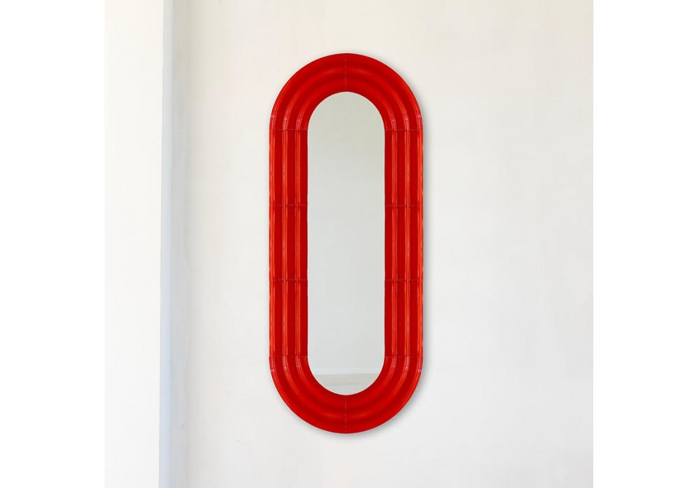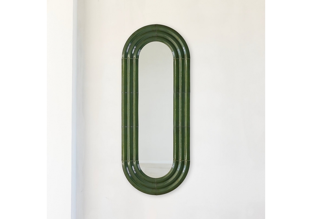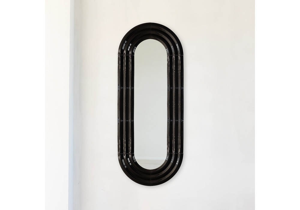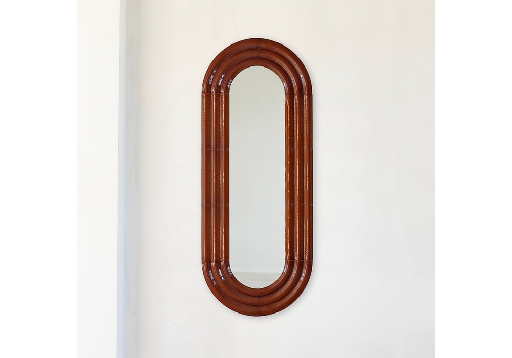 Elo diseñado por Pani Jurek es un espejo de cerámica esmaltada al aire, hecho a mano. Disponible en diferentes acabados.