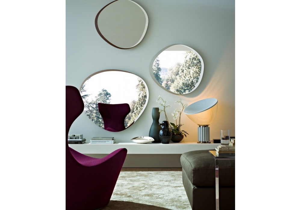 Zeiss Mirror diseñado por Luca Nichetto for Gallotti&Radice es un extralight espejo biselado a mano, en tres diferentes formas y tamaños. Marco de madera (5 cm de espesor) o efecto lacado blanco de la tela de los colores castaños, arena y cáñamo.
