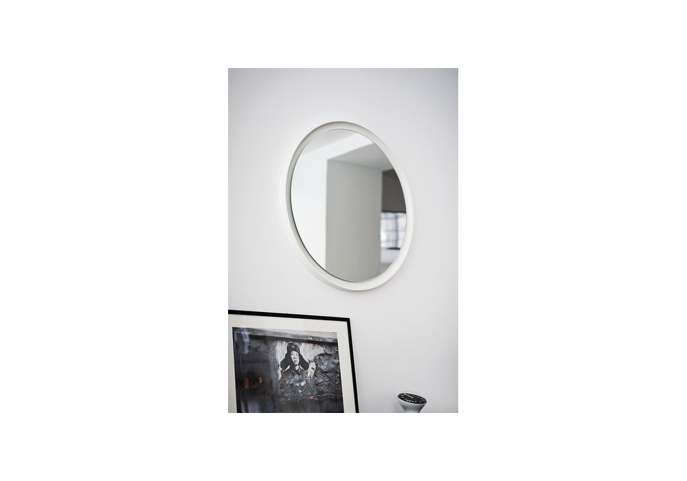 Memory diseñado por Benedini Associati para Agape es un espejo con marco lacado en blanco o negro. Disponible en la versión con o sin iluminación LED.