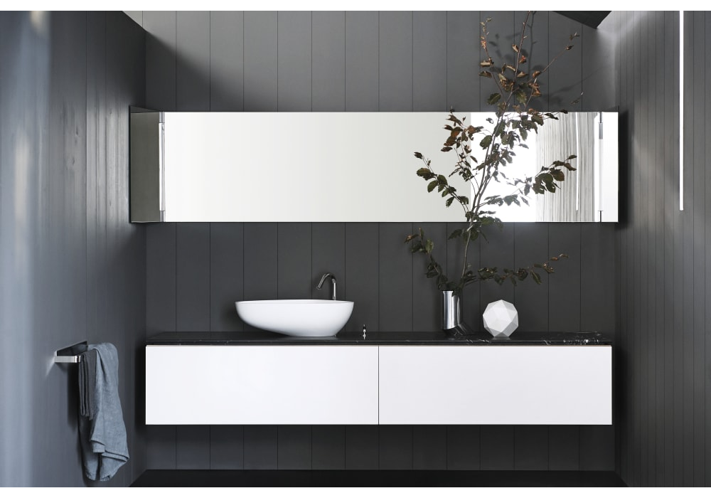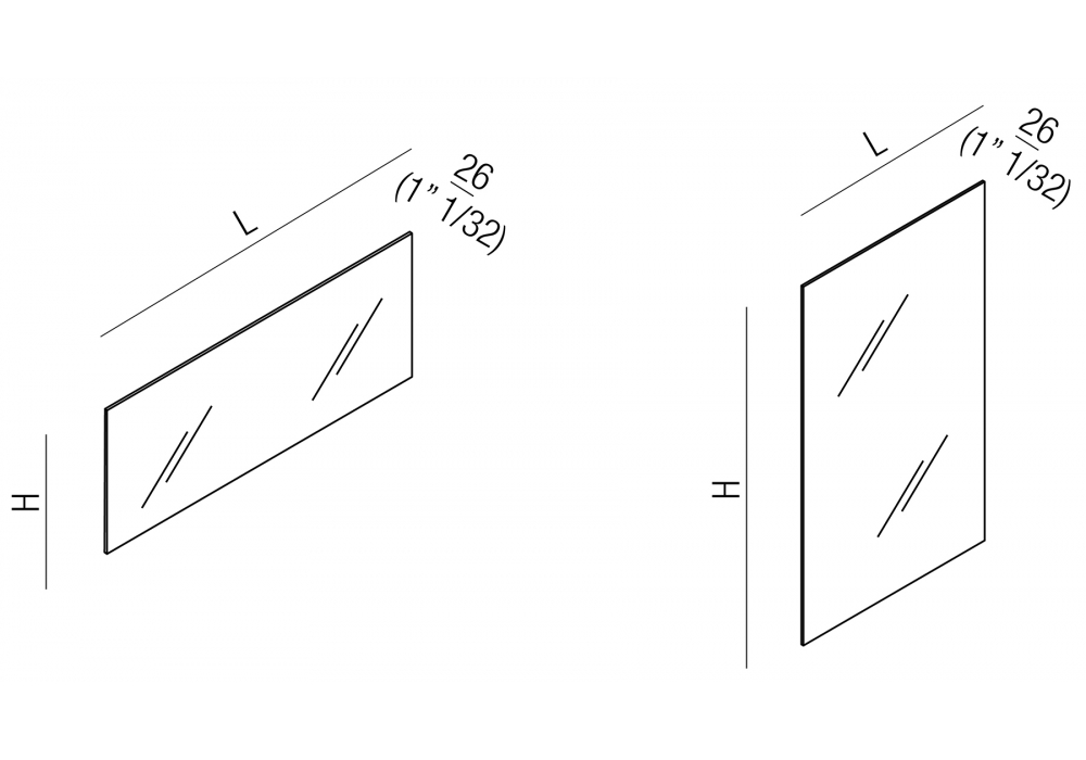Nudo diseñado por RD Agape para Agape es un espejo rectangular sin marco, con canto pulido y film de seguridad. Incluye kit de fijación.