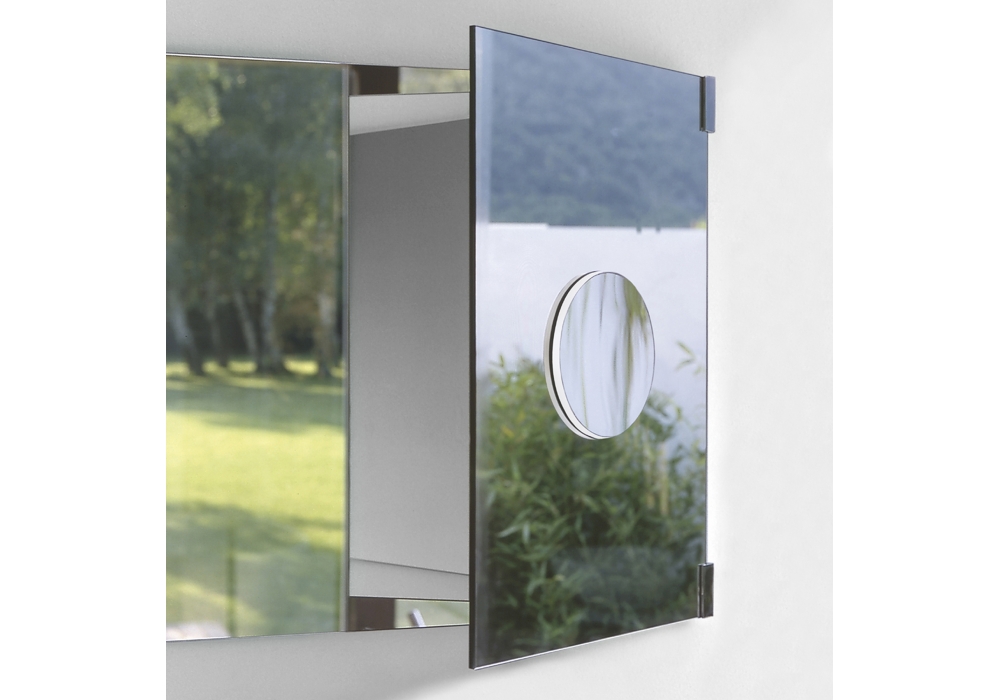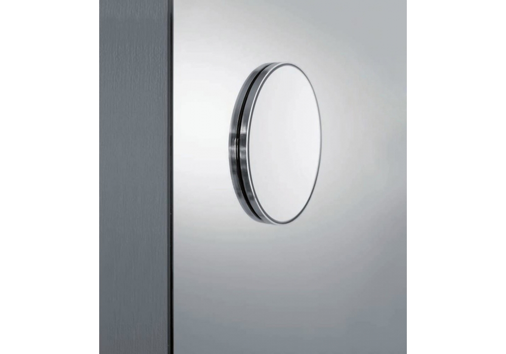 Spai diseñado por Benedini Associati para Agape es un espejo de aumento redondo con dorso adhesivo y marco de plástico cromado. El espejo se puede colocar en todas las superficies lisas en la posición que prefiera. Factor de ampliación 2.