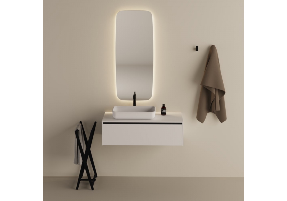 Seppia diseñado por Benedini Associati para Agape es un espejo de forma superelíptica con el borde pulido con o sin iluminación LED. Disponible para posicionamiento horizontal o vertical. Kit de fijación incluido.