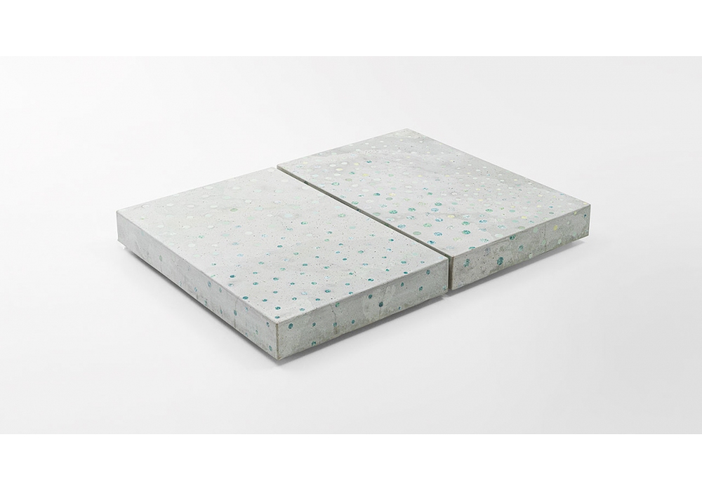 Marna diseñada y producida por Paola Lenti es una mesa de centro disponible en diferentes tamaños, adecuada para espacios interiores y exteriores. Un bloque interno de poliestireno está revestido de Opus, una mezcla de piedra caliza y arcilla moldeada y decorada con un moderno mosaico de vidrio reciclado o fragmentos de cerámica. La mesa más grande (B194D) está provista de un soporte de nido de abeja de aluminio, insertado en el interior de la estructura. La superficie Opus está hecha a mano por la artista Simona Sporchia.