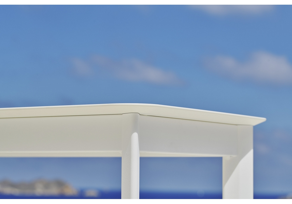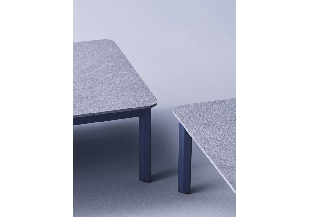 System diseñada por Daniele Lo Scalzo Moscheri para Varaschin es una mesita con estructura en aluminio pintado en polvo y tablero en HPL o cerámica. Disponible en diferentes acabados y en varios tamaños.