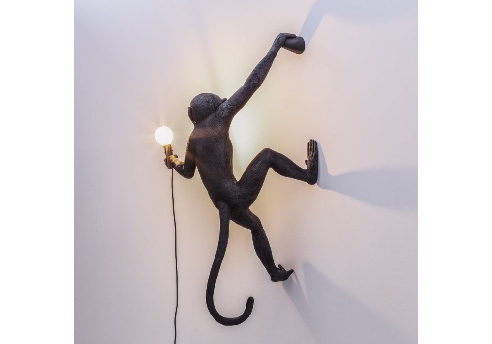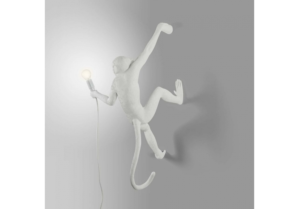La lámpara Monkey Left Hand diseñada por Marcantonio Raimondi Malerba para Seletti es una lámpara de pared realizada en resina blanca o negra sostenida por un anclaje de pared especial. La fuente de luz adoptada es de tipo LED de filamento alimentada por un cable de plástico. El Monkey Left Hand está disponible en diferentes acabados.