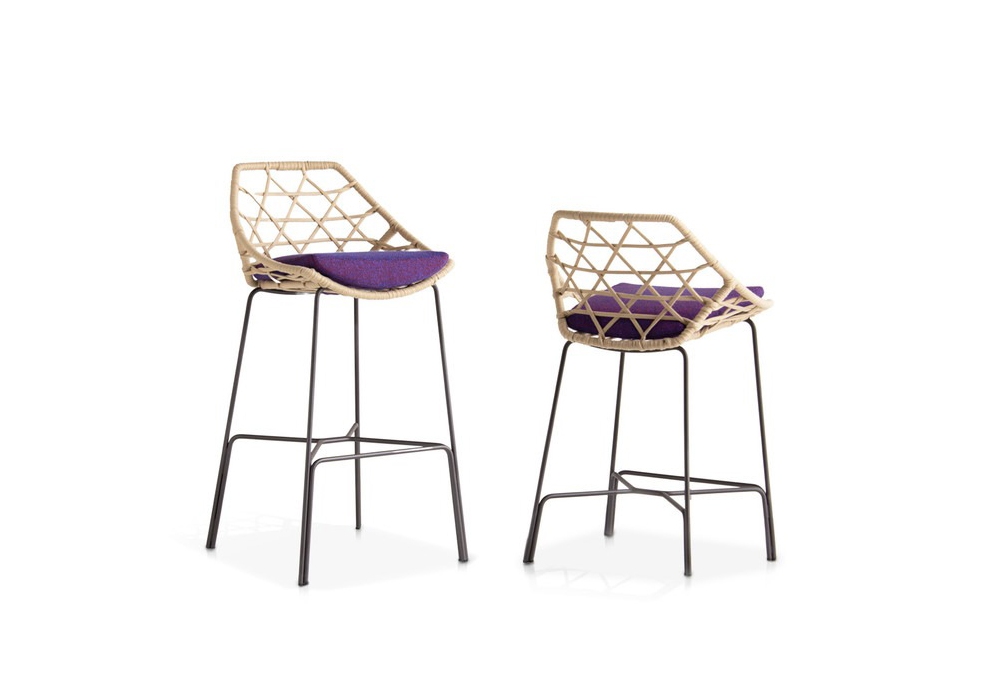 Cut Outdoor diseñado por Stephan Veit para Potocco es un taburete de exterior con estructura tubular de metal pintado en diferentes acabados. El asiento y el respaldo están tapizados en cuerda de gas color beige. El cojín del asiento está fabricado en espuma de poliuretano recubierto de tejido apto para uso en exteriores. Cut Outdoor está disponible en diferentes acabados y modelos.