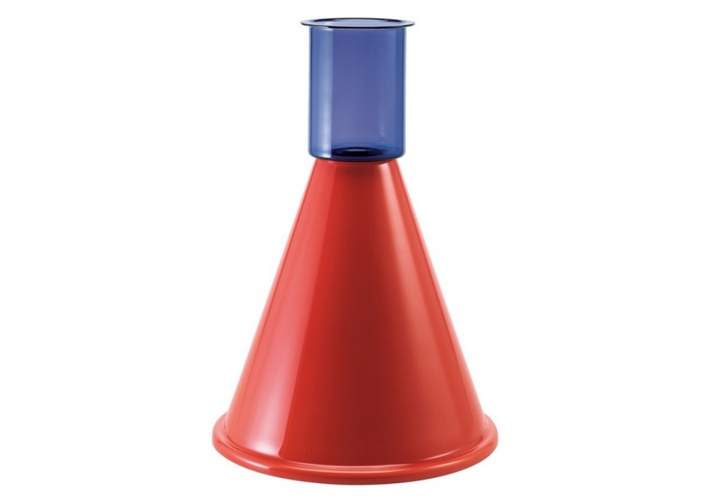 Goburam diseñado por Ettore Sottsass para Venini es un jarrón de vidrio soplado a mano. Acabado en azul noche y rojo coral. Edición limitada a 99 obras.