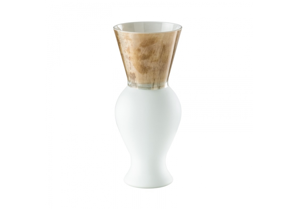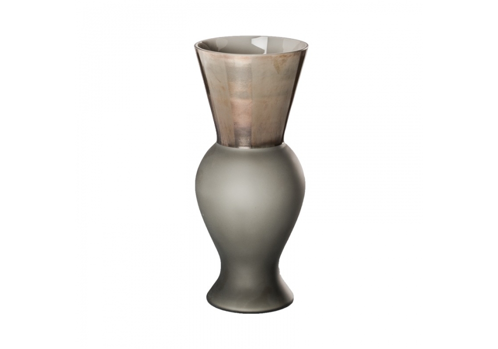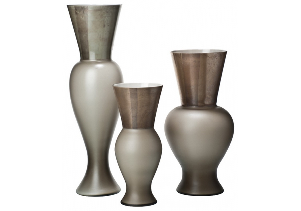 Re Regina & Principe diseñado por Rodolfo Dordoni para Venini es un jarrón en vidrio soplado artesanal. La parte superior, la corona, está cubierta por hojas de metal. Disponible en diferentes medidas y acabados.