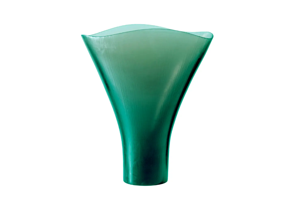 Battuti 516.13 diseñado por Tobia Scarpa y Ludovico Díaz de Santillana para Venini es un jarrón de vidrio soplado, disponible en color aguamarina. Edición numerada por año.