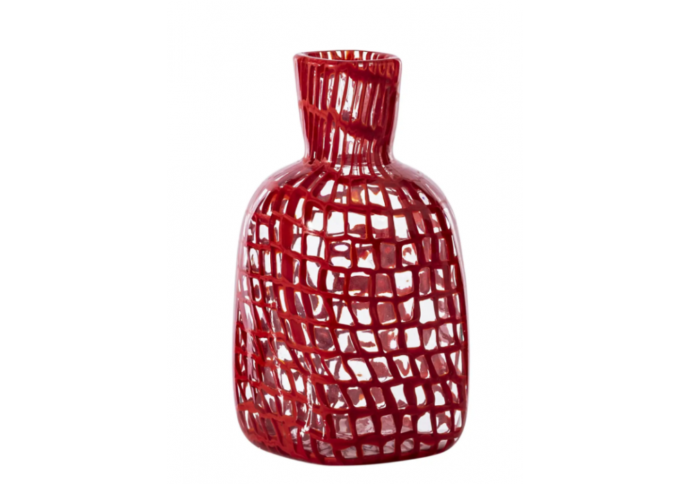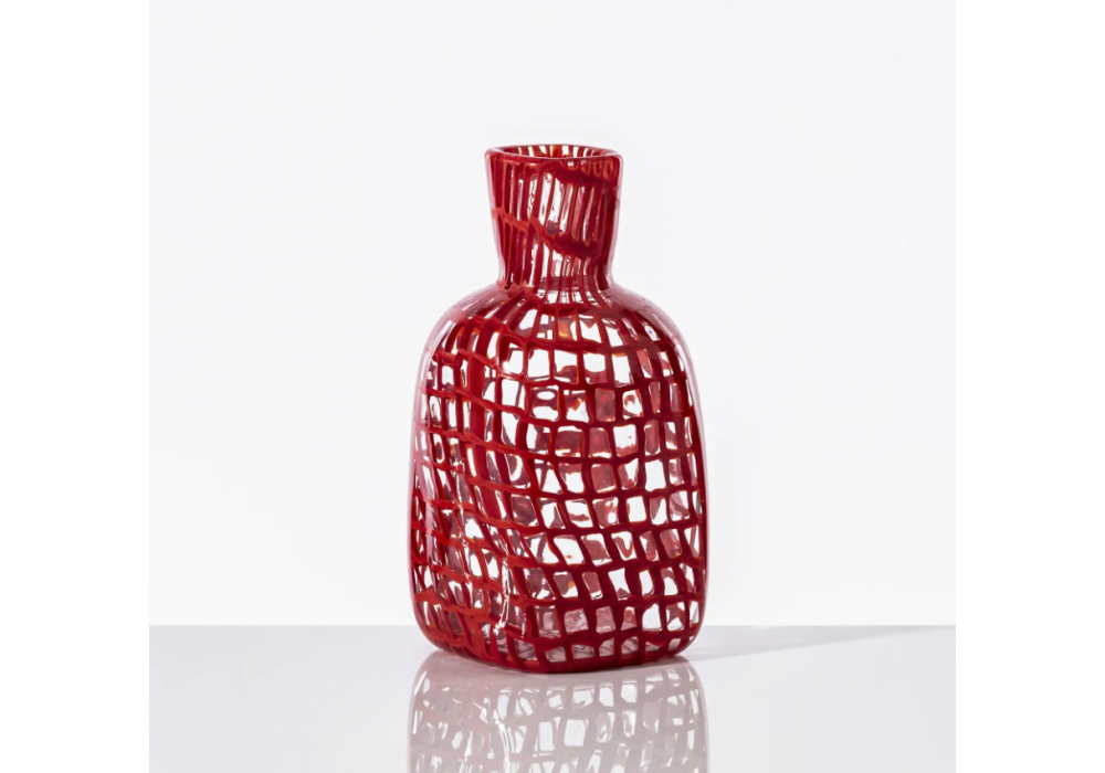 Occhi 520.02 diseñado por Tobia Scarpa para Venini es un jarrón de vidrio soplado artesanal, con la técnica “Murrine”. Disponible en acabado coral / cristal.