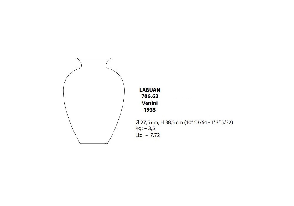 Labuan 706.62 diseñado y producido por Venini es un jarrón de vidrio soplado a mano. Disponible en diferentes acabados.