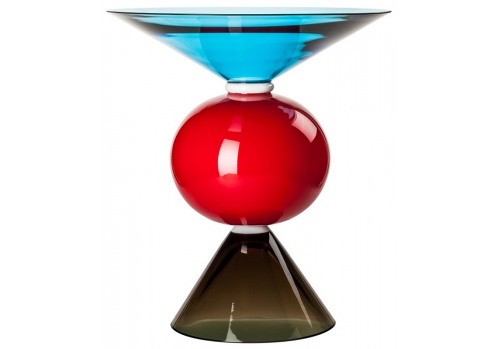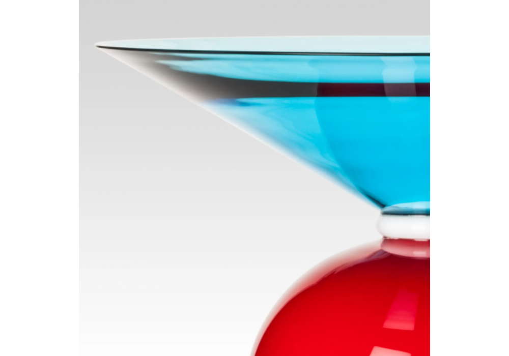 Oman diseñado por Ettore Sottsass para Venini es un jarrón de vidrio soplado y trabajado a mano. Volúmenes que se reflejan entre sí, como recuerdos mágicos de tierras lejanas. El principio de las obras diseñadas por Ettore Sottsass es monumental y arquitectónico, con una profunda simbología.