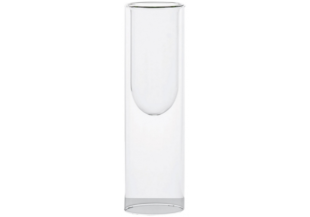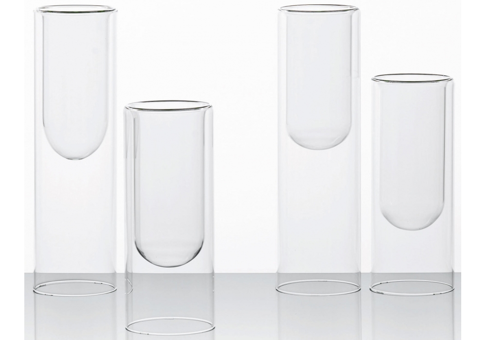 Tutube firmado por Marc Krusin para Glas Italia es un recipiente cilíndrico de cristal borosilicato transparente, disponible en dos alturas diferentes. El soplado del cristal crea una concavidad dentro del cilindro, con solución de continuidad con el exterior.