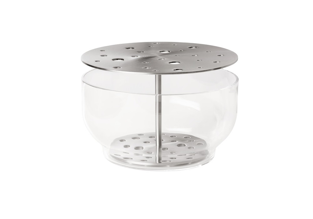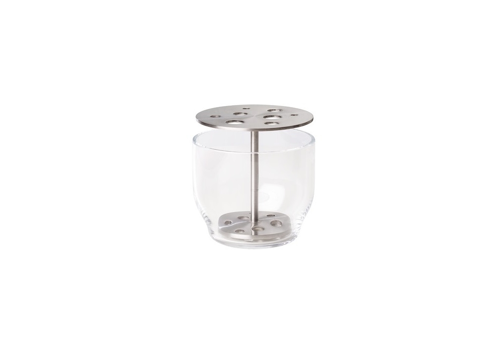 Ikebana diseñado por Jaime Hayon para Fritz Hansen es un jarrón realizado en vidrio soplado a mano y acero inoxidable. Disponible en tres dimensiones.