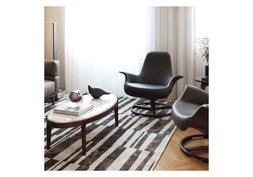 Clina diseñado por Giorgetti es un jarrón soplado y modelado a mano. Disponible en cristal azul grisáceo o cristal amatista.