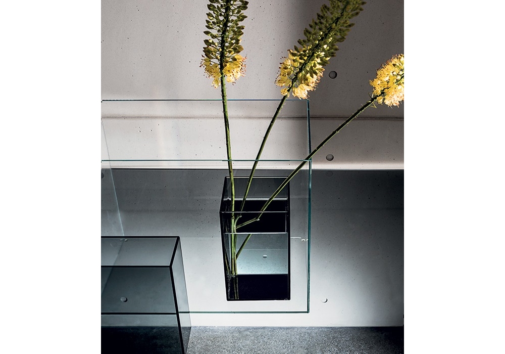 Skyline diseñado por Gianluigi Landoni para Sovet es un jarrón en vidrio extraclaro, ahumado o bronce. Disponible en diferentes dimensiones.