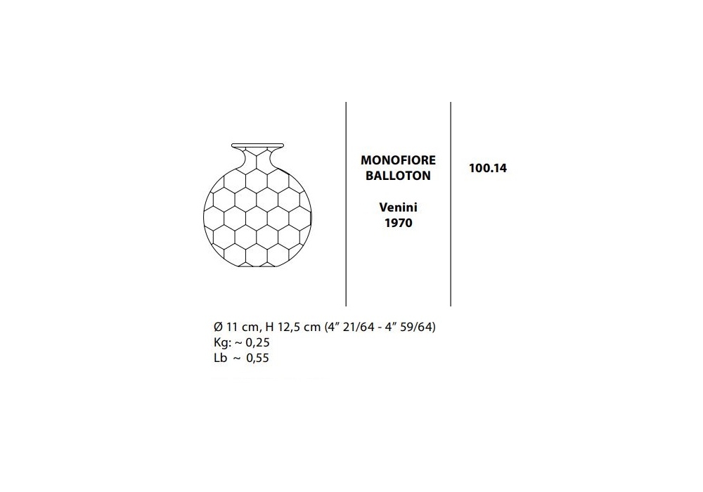 Monofiore Balloton 100.14 diseñado y producido por Venini es un jarrón de vidrio soplado a mano, disponible en diferentes acabados.
