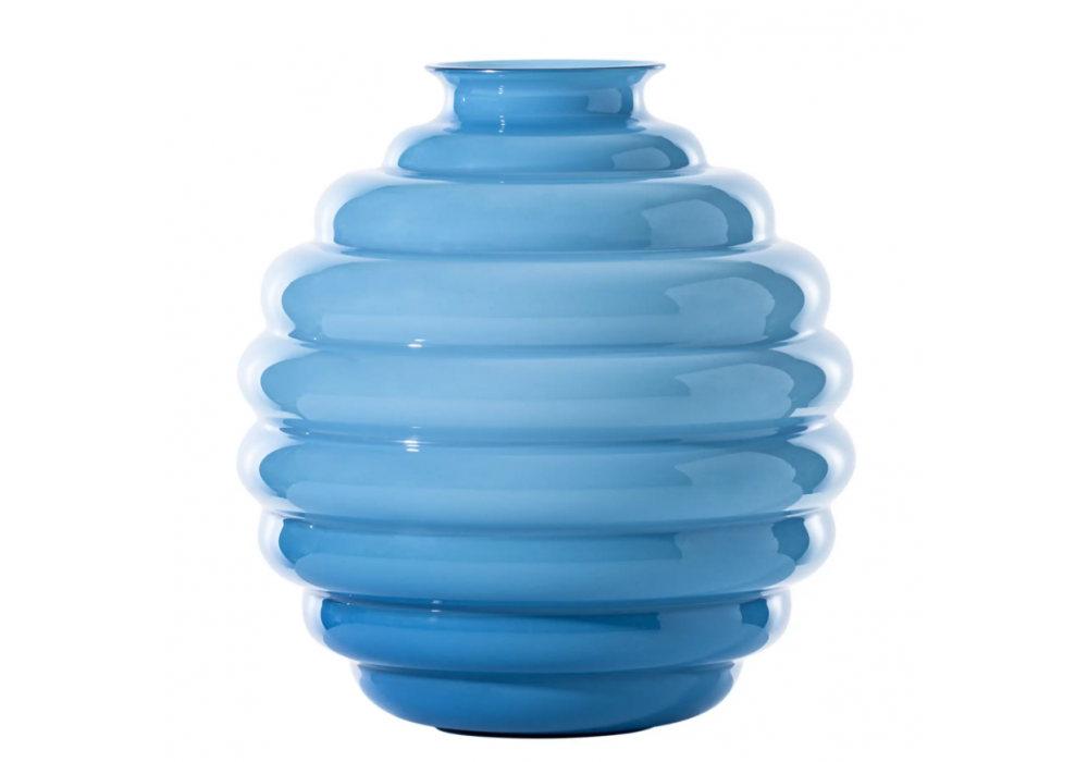 Dèco 707.10 diseñado por Napoleone Martinuzzi para Venini es un jarrón en vidrio soplado a mano opalino. Disponible en diferentes acabados.