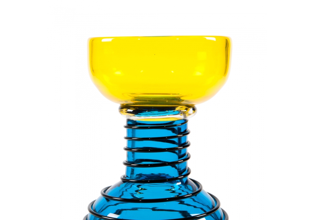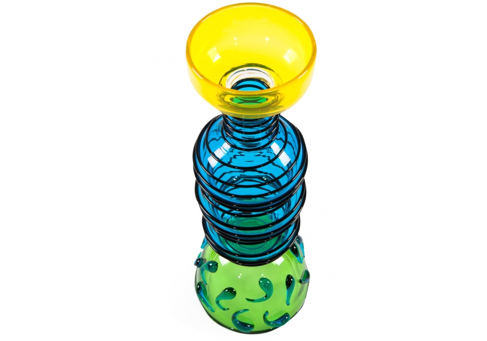 Alioth diseñado por Ettore Sottsass para Memphis Milano es un jarrón de vidrio soplado.
