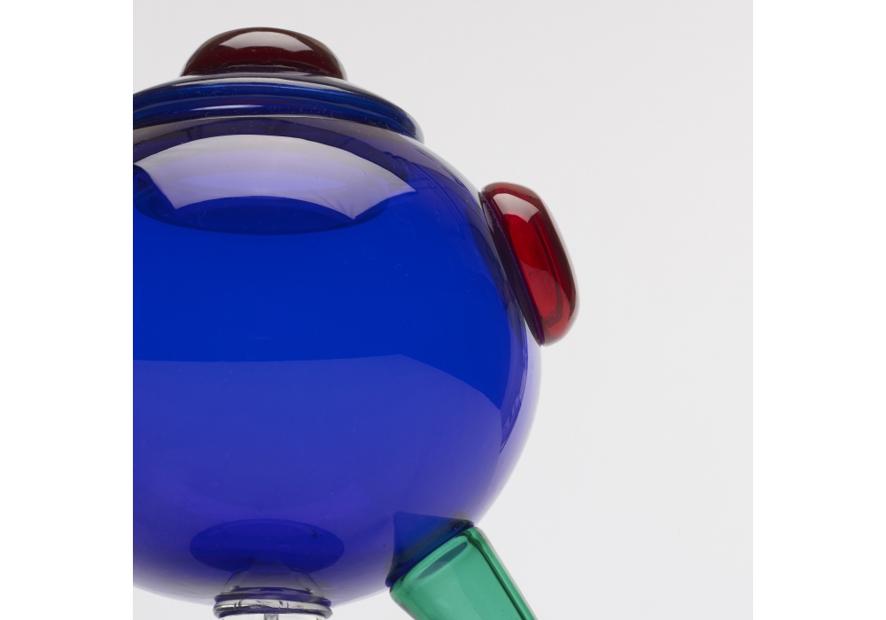 Rigel diseñado por Marco Zanini para Memphis Milano es un jarrón con tapa, fabricado en vidrio transparente, azul, negro, verde, rojo.