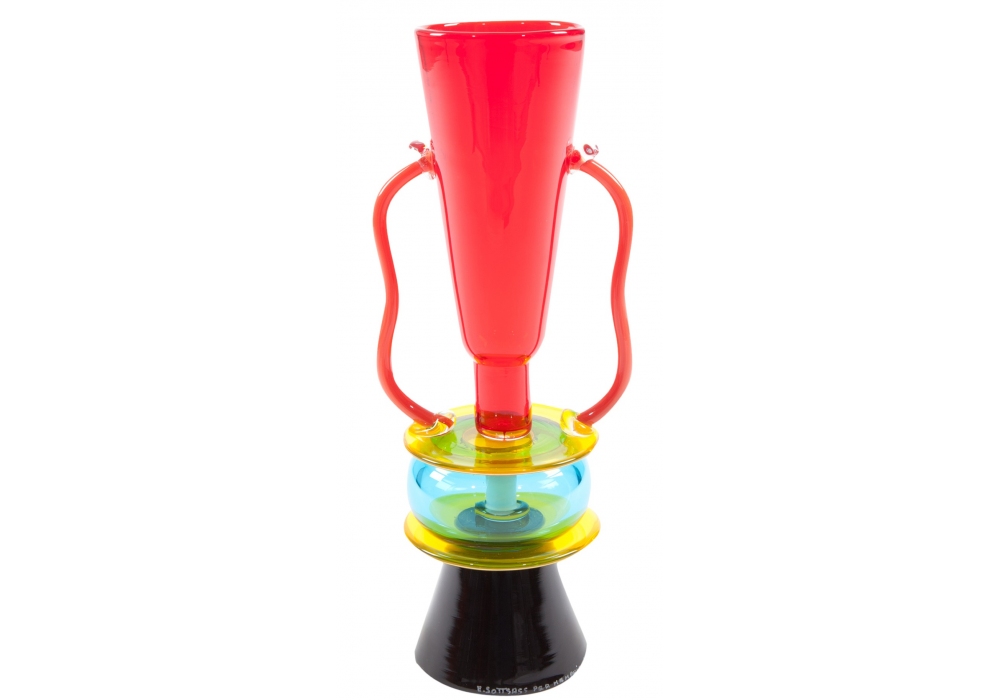 Sirio diseñado por Ettore Sottsass para Memphis Milano es un jarrón de vidrio soplado.
