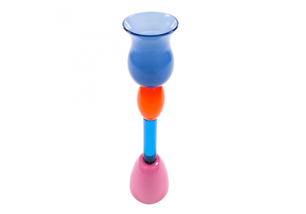 Erinna diseñado por Ettore Sottsass para Memphis Milano es un jarrón de vidrio soplado.
