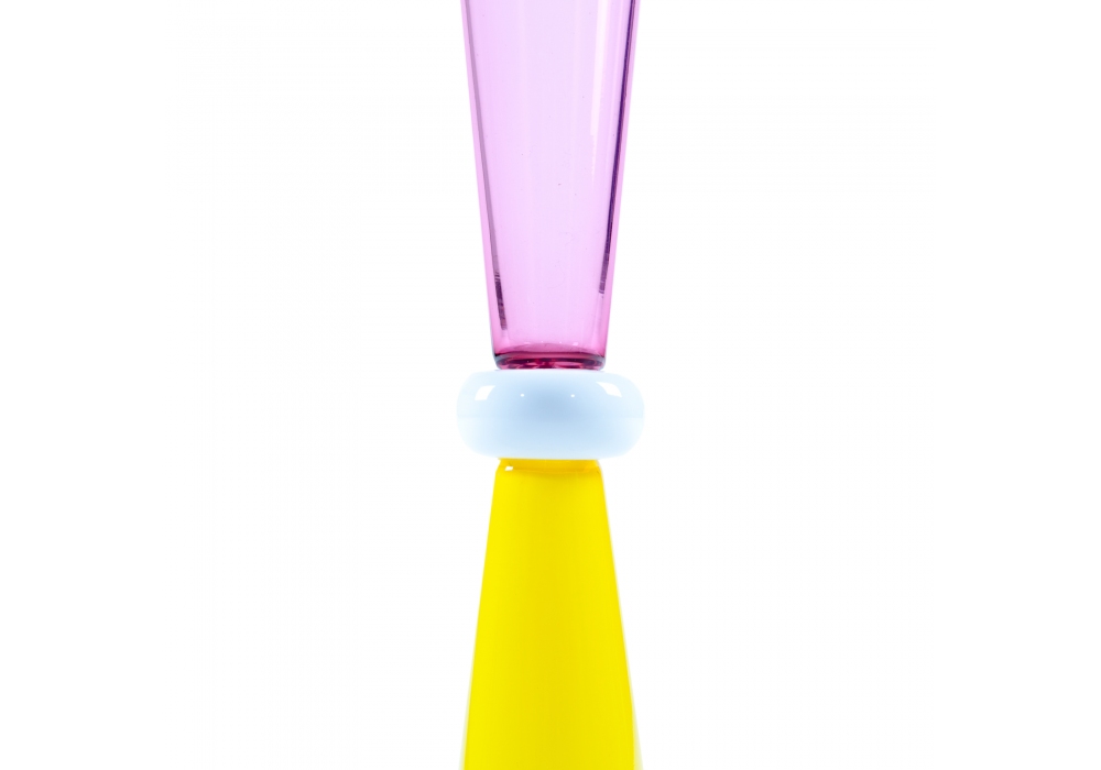 Amaltea diseñado por Ettore Sottsass para Memphis Milano es un jarrón de vidrio soplado.