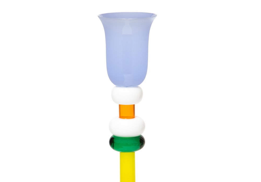 Astidamia diseñado por Ettore Sottsass para Memphis Milano es un jarrón de vidrio soplado.